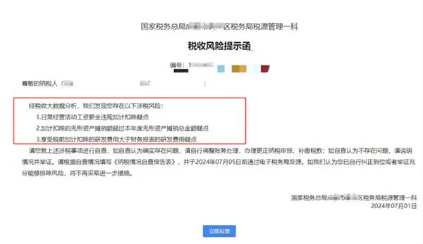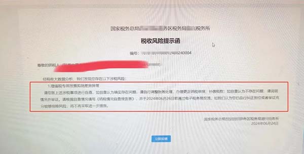 首先要清楚,稅務(wù)機關(guān)向你公司發(fā)來稅收風(fēng)險提示函,這件事的嚴(yán)重程度。一般來說,稅務(wù)局是對不屬于高風(fēng)險的納稅人,才會通過下發(fā)稅收風(fēng)險提示函來實施風(fēng)險應(yīng)對。