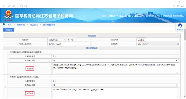 3、在反饋界面,納稅人可以根據(jù)實際自查情況,進行風(fēng)險自查反饋,填寫情況說明。