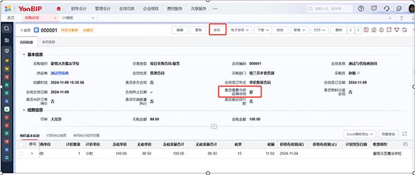 1、采購商【發(fā)布】合同,編輯完成的采購合同有【發(fā)布】按鈕,發(fā)布的意思就是發(fā)布給供應(yīng)商,會生成供應(yīng)商端的銷售合同。