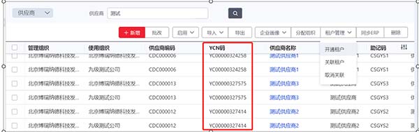 已經(jīng)開通和關(guān)聯(lián)租戶的供應(yīng)商在供應(yīng)商檔案列表有YCN碼就是供應(yīng)商在平臺的唯一身份證號碼。只要有這個(gè)號碼,就可以進(jìn)行采購合同的協(xié)同。下面就詳細(xì)講采購合同協(xié)同的操作過程。