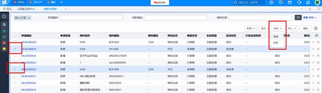 答:可以。勾選所有需要審核的物料,點(diǎn)擊右上【審核】下拉框,選擇審核即可完成一次多個(gè)物料的審核。